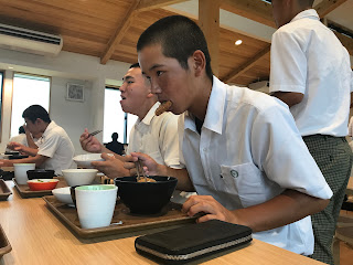 今日のランチメニューは、あんかけ焼きそばとメンチカツ、ごはんでした。柔道部のみんなが、大盛ご飯でおいしそうに食べていました。 これは、番外編ではありません。いつもの光景です。 本校は、学校指定宿舎生(寮生)が、朝昼晩の食事を、食堂で食べています。 練習が終わって、サッカー部員が...